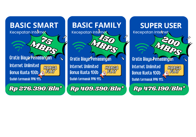 Paket internet tanpa tambahan, cocok untuk keluarga dan usaha rumahan.